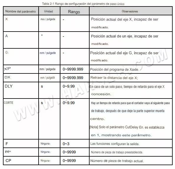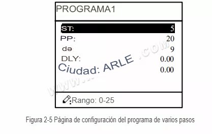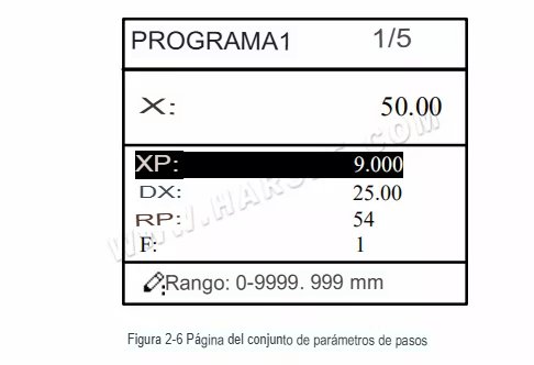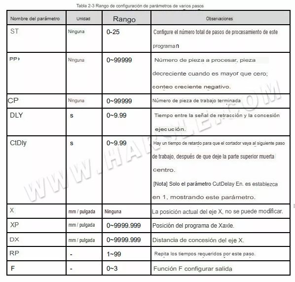 El rango de configuración de parámetros de varios pasos se muestra en la tabla.