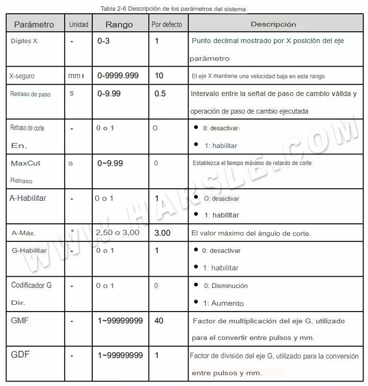 El usuario puede configurar todos los parámetros necesarios para el funcionamiento normal del sistema, incluido el parámetro del sistema, el parámetro del eje X.