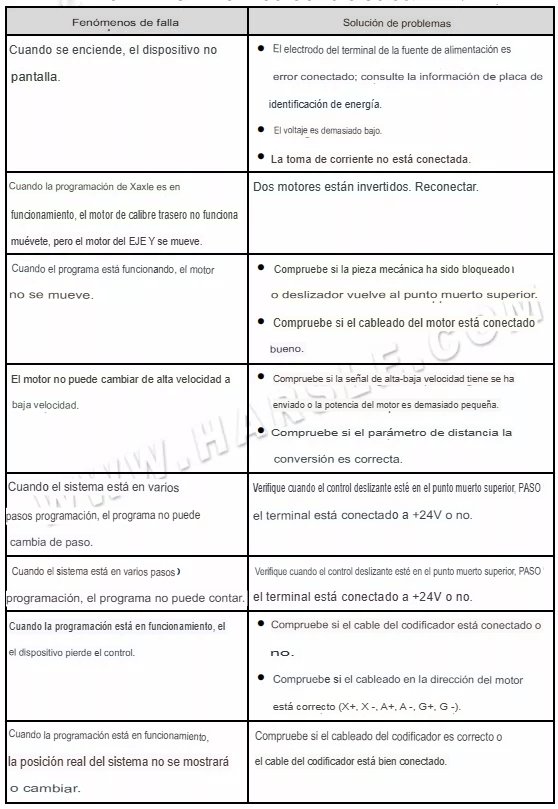 | A.26 | X Detener Err | El motor del tope trasero tiene una parada anormal. |