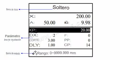 ● Área de visualización de parámetros: muestra el nombre del parámetro, el valor del parámetro y la información del sistema.